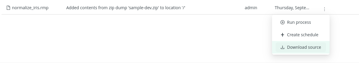 Browse through the folder structure to find your process and click on it. (Note that if it is a process you have scheduled or recently executed, you can also find it in the process scheduler.) You can view the process's XML by downloading it to your machine with Download source: