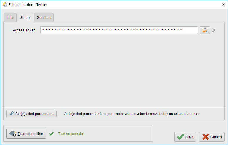 Create and switch to the Setup tab in the Edit connection dialog.To the right of the Access Token field, click the