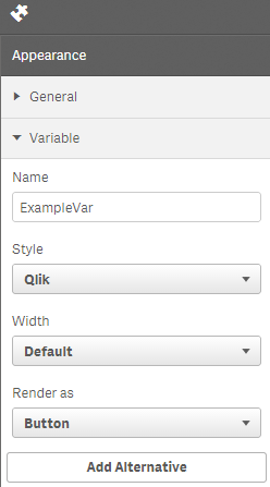 - Create new Variable object on Qlik Sense dashboard (or use existing). Such objects can be created once the Variable extension has been installed to Qlik Sense.