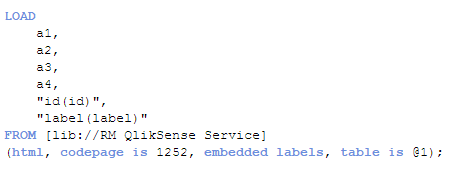 Field names tell Qlik Sense where to look for column names. If the first record contains the names of columns then the Embedded field names setting should be selected. If the data does not contain column names, No field names should be selected. RapidMiner always sends column names as first record so Embedded Labels is the setting to use.