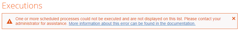 Whenever a submission of a process to the execution component fails, the failed execution is stored into the database table named ra_ent_jobsubmissionfailure and consequently the following error message is displayed on the process executions page:
