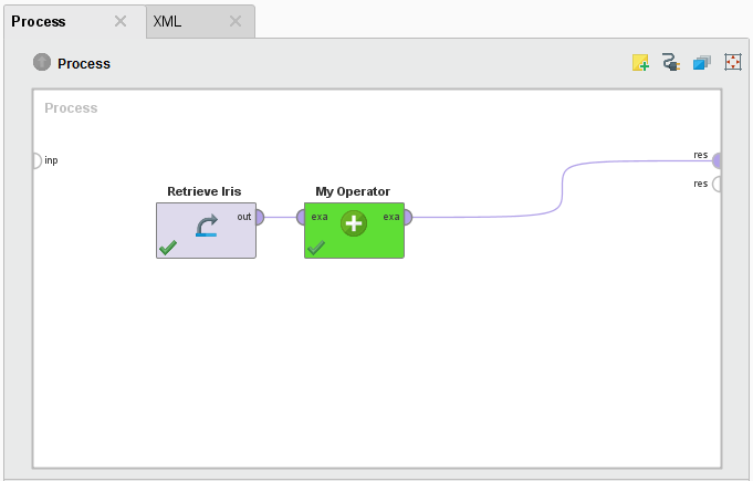 Install the extension again (with the Gradle task) and restart RapidMiner Studio. You can see that the operator now has an input and output port.