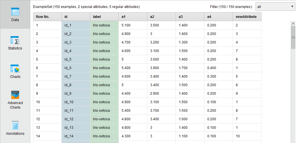 When you run the process that loads sample data and applies the example operator on it, you can see that the new attribute appears in the resulting example set.