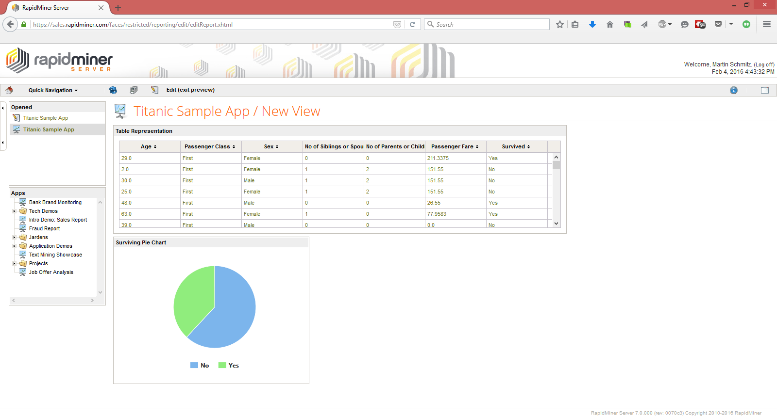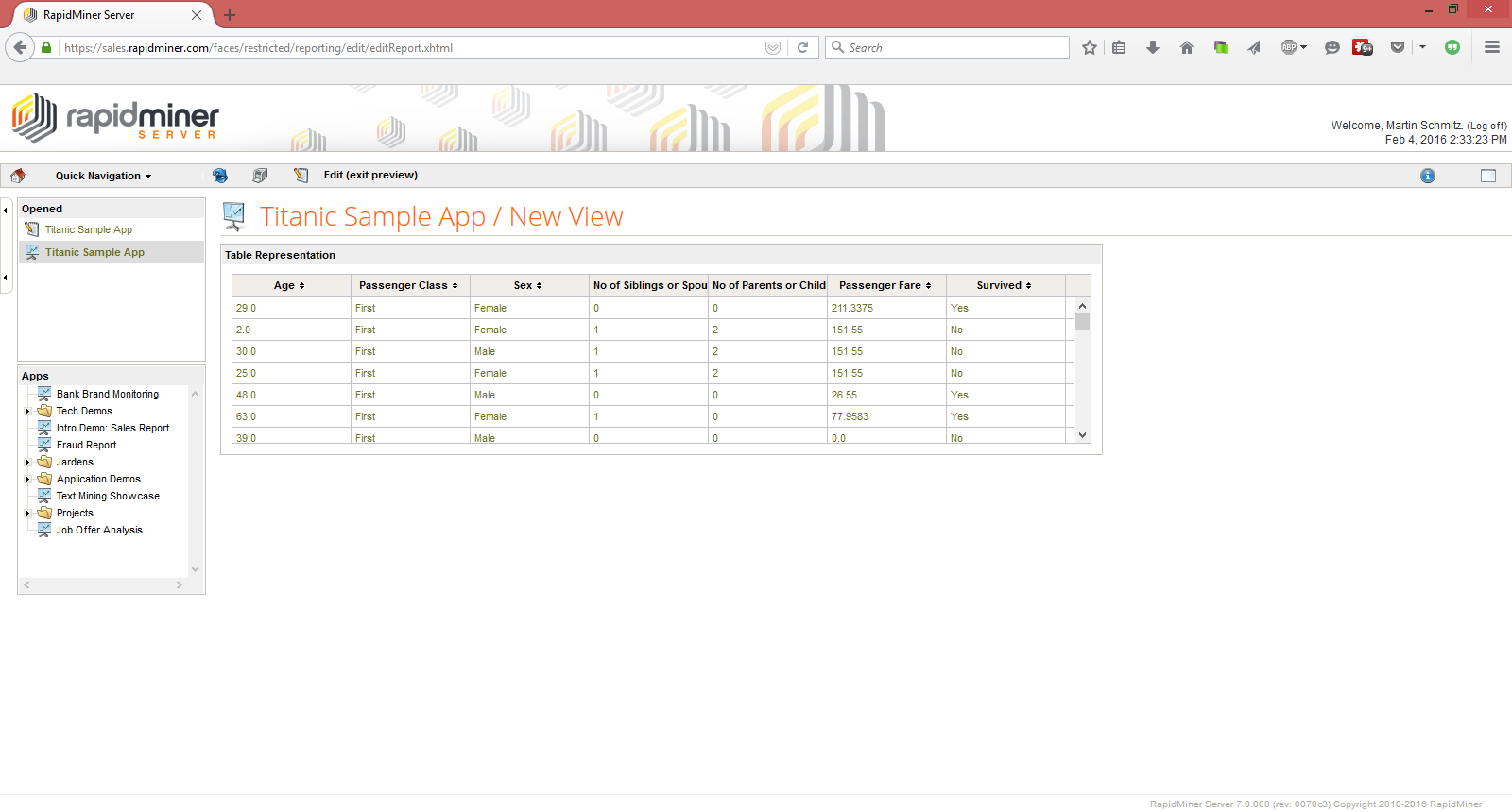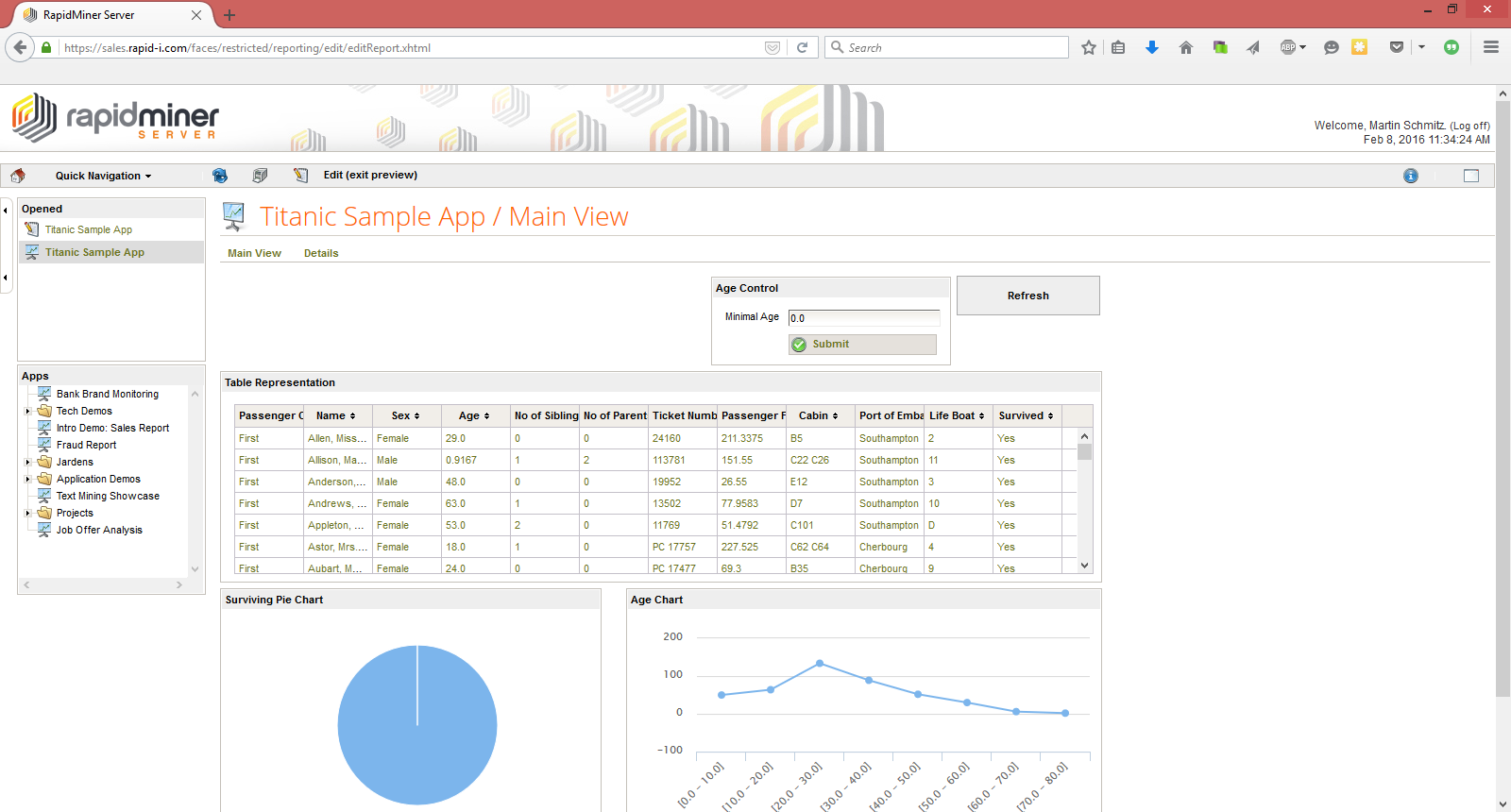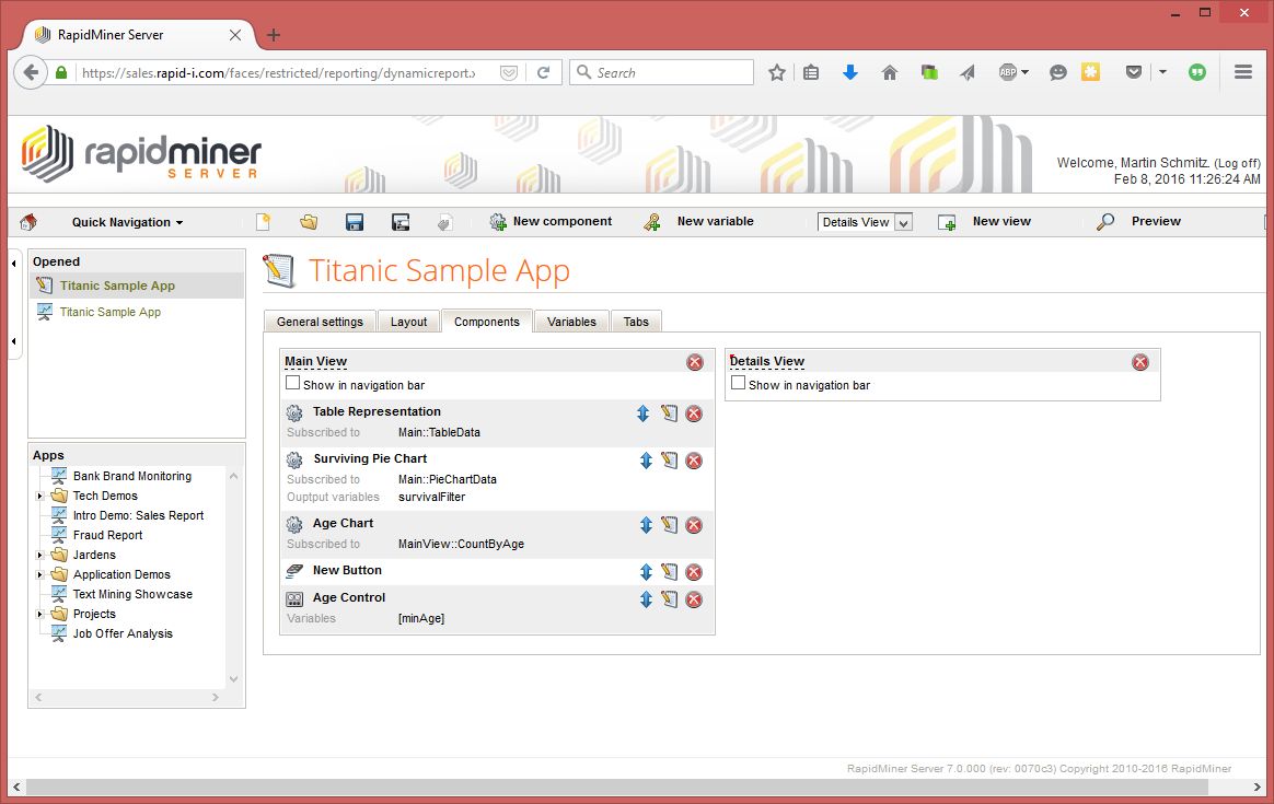 This is a general introduction to building Web Apps, using the Titanic dataset. The Titanic data set is bundled with RapidMiner Studio, in the repository.