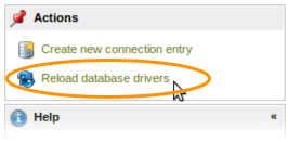 elements (one for each additional driver) within the outer <drivers>markers.From the web interface of RapidMiner Server, open Administration > Database Connections. In the Actions box, select Reload database drivers.