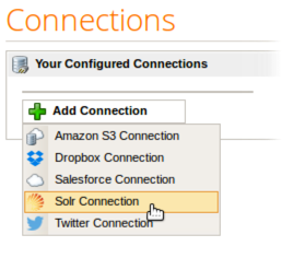 configure a connection to your Solr server. Making the connection requires that you know the connection details of your account.
