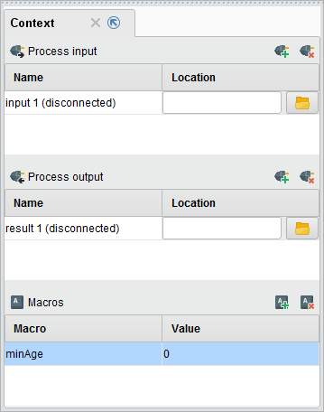 We would like to create a new user input component. This component will use the variable minAge and will filter the table for passengers older then this value. To do this we need to create a filter process first. The process is called Update Table and has a macro called minAge. This macro can be initialized to any value.