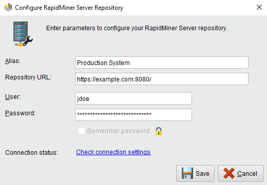 To access the repository again the user might need to enter the password if storing the password was forbidden through the rapidminer.disallow.remember.password setting.